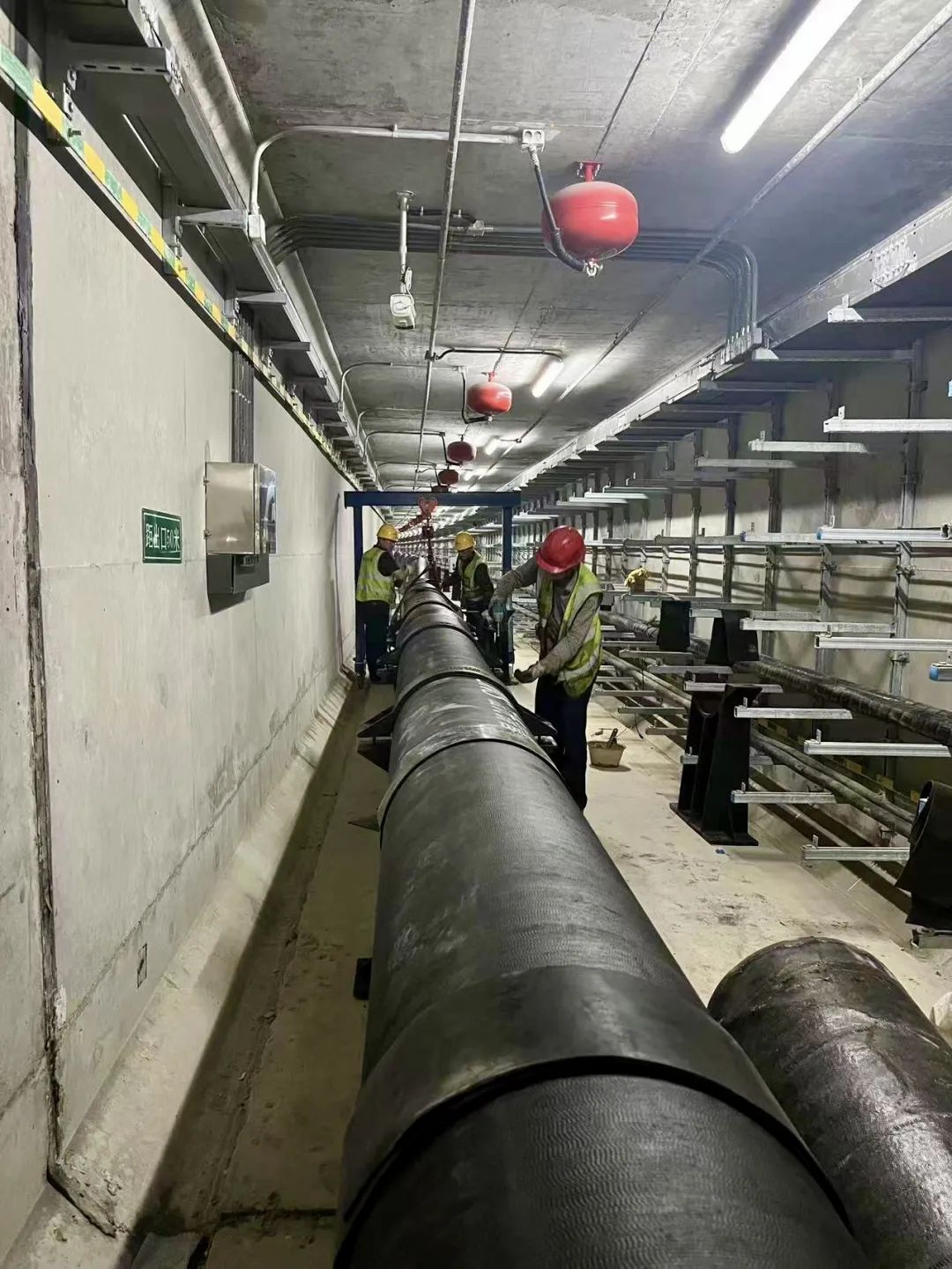 綜合管廊供水管網(wǎng)工程于今年3月份啟動(dòng),總投資700多萬元,在管廊運(yùn)營(yíng)管理單位和相關(guān)部門的指導(dǎo)下,施工單位結(jié)合實(shí)際制定施工方案、創(chuàng)新施工方法,專門定做適合地下管廊作業(yè)使用的小型龍門吊和水平運(yùn)輸工具,同時(shí)上足人力,確保材料轉(zhuǎn)運(yùn)入廊不受影響,從而克服了作業(yè)空間狹窄、材料轉(zhuǎn)運(yùn)吊裝等困難,確保了項(xiàng)目安全、有序完成。進(jìn)入管廊可以看到,一條直徑DN400的球墨鑄鐵管道被穩(wěn)穩(wěn)安裝固定在管廊底部基座上,管道兩端將分別與迎賓大道、編鐘大道供水主管網(wǎng)連通,管道通水后城南片區(qū)供水將形成環(huán)狀管網(wǎng),可有效緩解片區(qū)供水壓力不均衡的現(xiàn)狀,將為城南片區(qū)供水服務(wù)及后期開發(fā)建設(shè)提供堅(jiān)實(shí)保障。