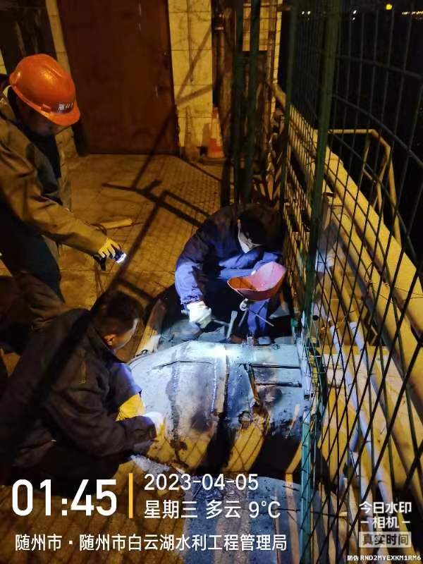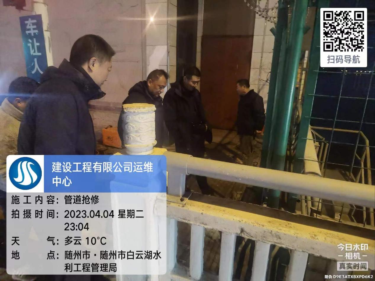 4月4日,水務(wù)集團(tuán)接到一條熱線工單,反映位于白云湖大壩舜井大橋路段處一根DN700的主供水管網(wǎng)破裂需盡快修復(fù)。盡管已是夜間,水務(wù)集團(tuán)維修人員仍火速趕至現(xiàn)場,當(dāng)即確定漏水管線影響范圍,及時關(guān)閉閥門并向受影響小區(qū)發(fā)布停水通知。