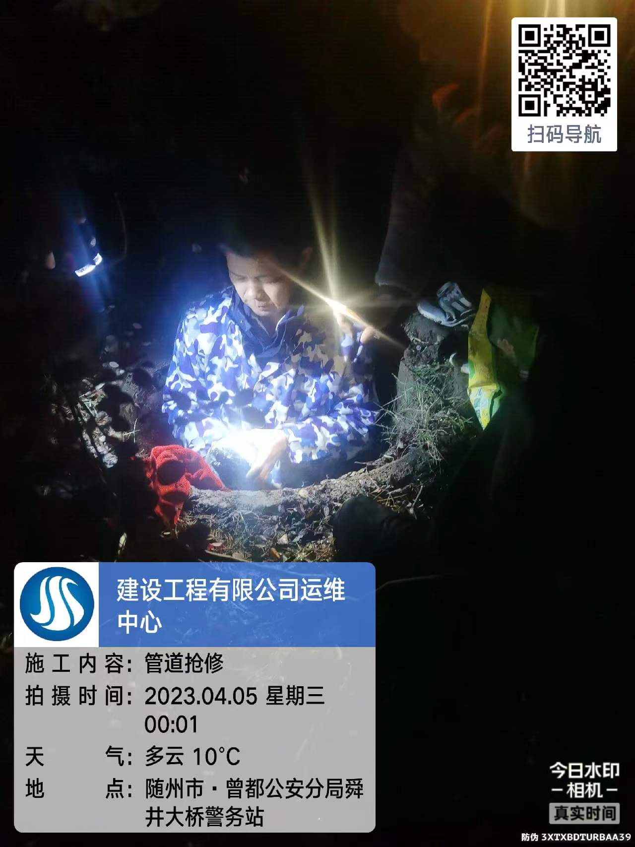 夜幕里,在探照燈燈光的照射下,為盡快修復(fù)供水管道,縮短停水時間,敲、拆、補(bǔ)、焊、聽......搶修隊伍一刻不停,緊張地忙碌著。夜晚春風(fēng)微涼,他們的衣服被汗水浸透卻也渾然不覺。經(jīng)過連續(xù)3個多小時的奮戰(zhàn),搶修人員終于在翌日凌晨三點(diǎn)半順利修復(fù)了破損管道,恢復(fù)了通水,圓滿完成了搶修任務(wù)!