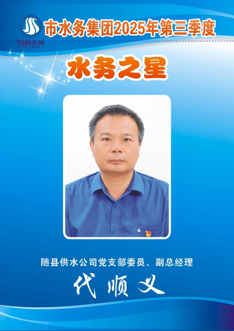 一名黨員就是一座燈塔。代順義,這位老共產黨員,幾十年如一日在基層一線恪盡職守、默默耕耘,用心用情保障農村飲水安全,始終踐行著共產黨員的初心使命,讓黨旗在隨縣供水服務的最前線高高飄揚,也讓“水務之星”的光芒在這片土地上熠熠生輝。
