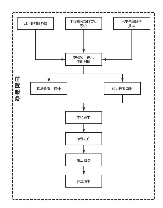 (一)通過(guò)政企數(shù)據(jù)共享及通過(guò)湖北省工程建設(shè)審批系統(tǒng)、湖北政務(wù)服務(wù)網(wǎng)等渠道,獲取用戶信息,主動(dòng)對(duì)接,主動(dòng)掌握用戶用水需求,根據(jù)接入地點(diǎn)的不同和用戶需求,確定是否需要在地塊紅線外增設(shè)接入管線,并將后續(xù)相關(guān)事項(xiàng)告知用戶。